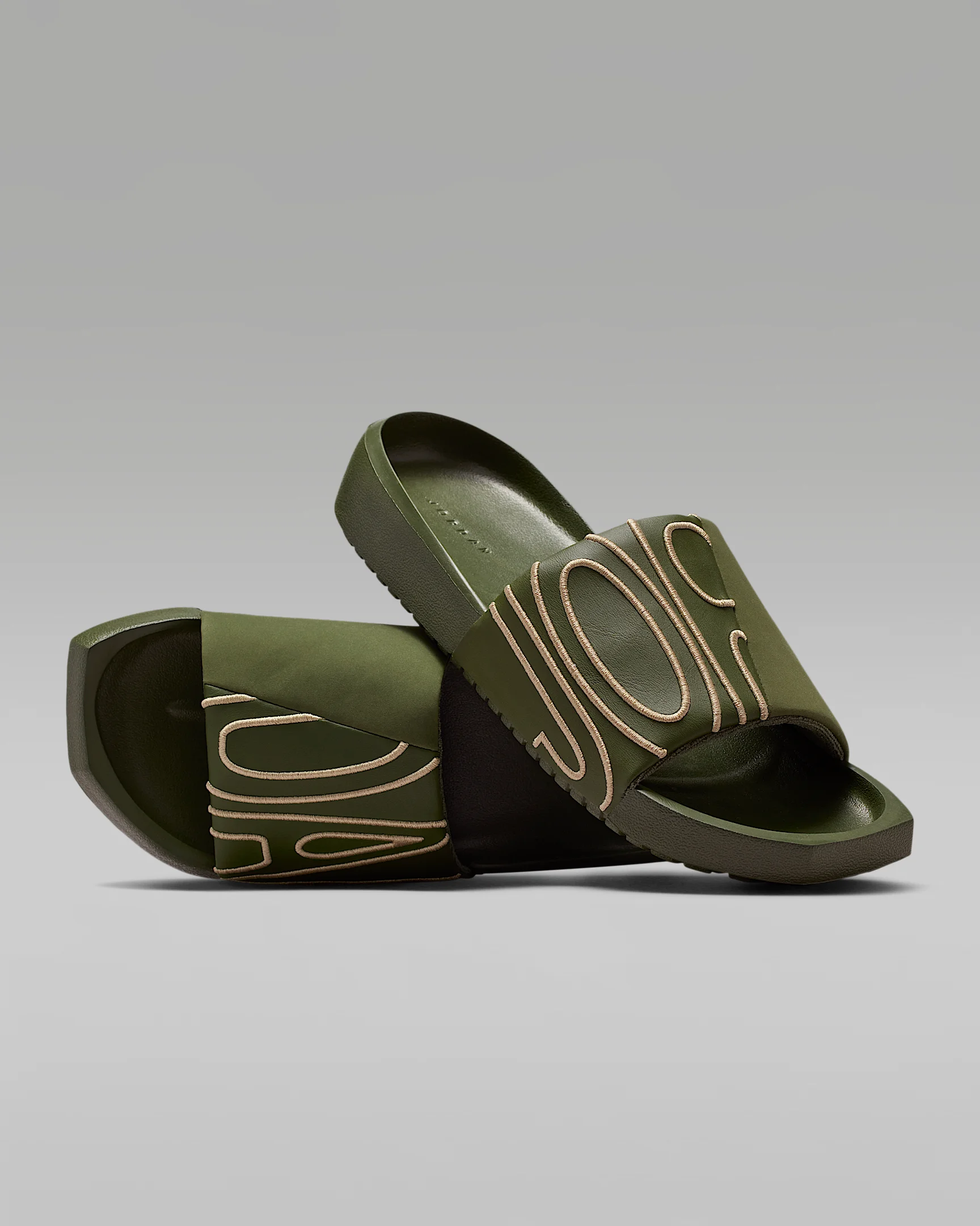 Go beyond the flip-flop in the Jordan NOLA Slide, an instant warm-weather favorite. Featuring a molded foam footbed with a squared-off toe, it's light and airy with an easy, slip-in strap. More Benefits - Deep heel cup is molded for a stable, comfortable fit. - Raised toe bar helps provide grip as you walk. - "Jordan" is debossed in the heel. Product Details - Shown: Cargo Khaki/Khaki - Style: CZ8027-302