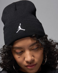Cold? Slip on this classic beanie. Its satin lining helps keep your hair on point while soft knit yarn adds a cozy feel. Benefits - Peak beanies all have a classic mid depth that’s versatile for everyday wear. - Smooth satin lining has a silky feel. Product Details - Body/Lining: 100% polyester - Embroidered Jumpman - Hand wash - Imported - Shown: Black/White - Style: HJ3224-010