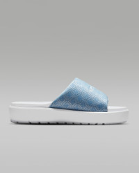 Meet the Jordan Sophia, an elevated take on everyday slides. A cushioned foam footbed and grippy rubber outsole work with a padded jacquard strap up top to give you a pillowy feel. Slide into summer in luxurious comfort. Benefits - Nike Air technology absorbs impact for cushioning with every step. - Jacquard strap is padded for a plush, comfortable feel. - Foam footbed helps cushion every step. - Rubber outsole adds durable traction. Product Details - Jumpman on heel - Foam midsole - Shown: Blue Beyond/Light Armory Blue/Gum Light Brown/White - Style: HQ8070-400