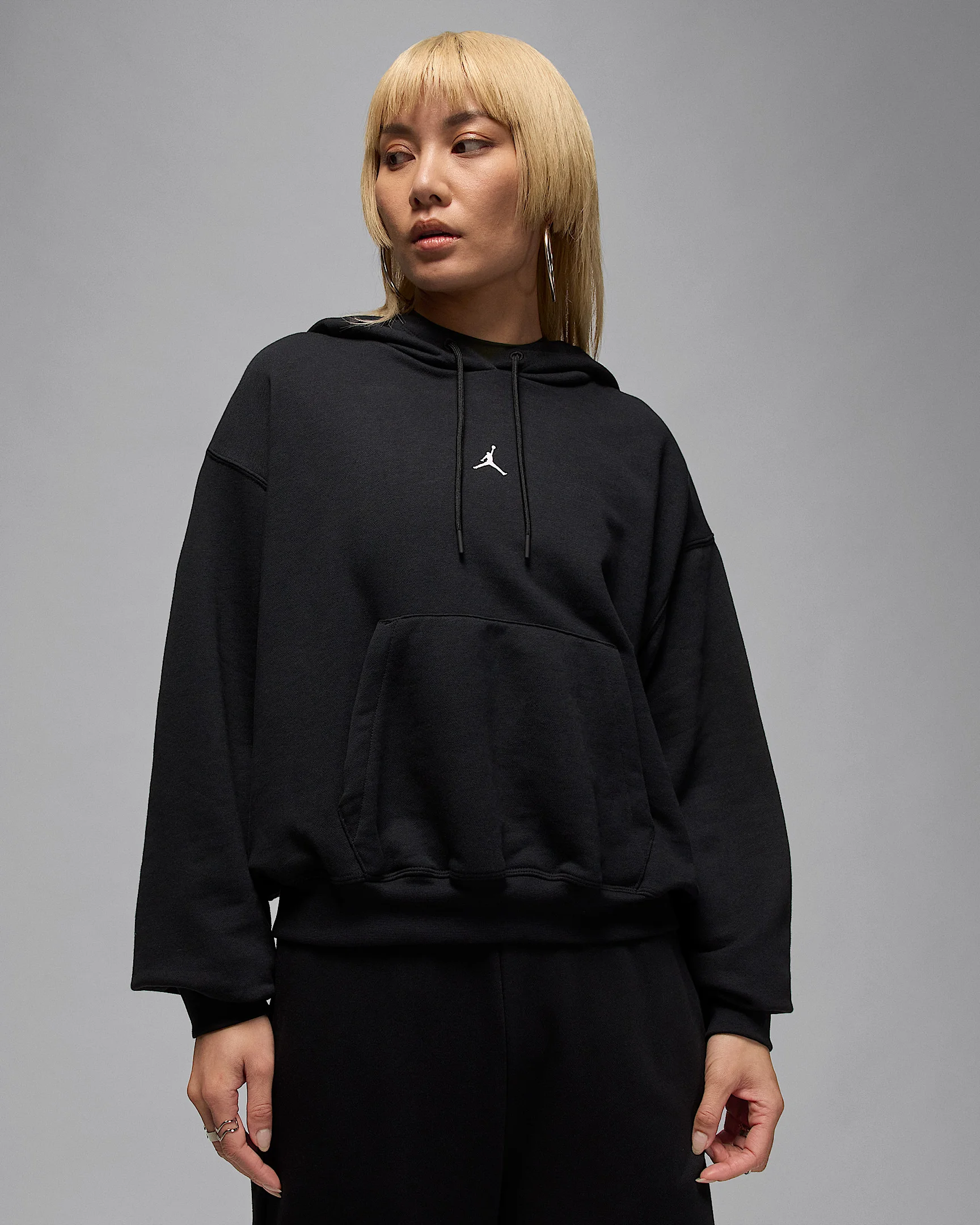 Ideal for working out or when you're just on the go, this roomy hoodie pairs our sweat-wicking tech with breathable French terry fabric to help you stay fresh. Benefits - Nike Dri-FIT technology moves sweat away from your skin for quicker evaporation, helping you stay dry and comfortable. - Smooth on the outside with rows of tiny unbrushed loops on the inside, this French terry fabric adds lightweight warmth. Product Details - Body/Hood lining: 70% cotton/30% polyester - Front pocket - Ribbed cuffs and hem - Machine wash - Imported - Shown: Black/White - Style: IB2498-010 SIZE & FIT Model is wearing size S and is 5′8″173cm Loose fit: roomy and relaxed