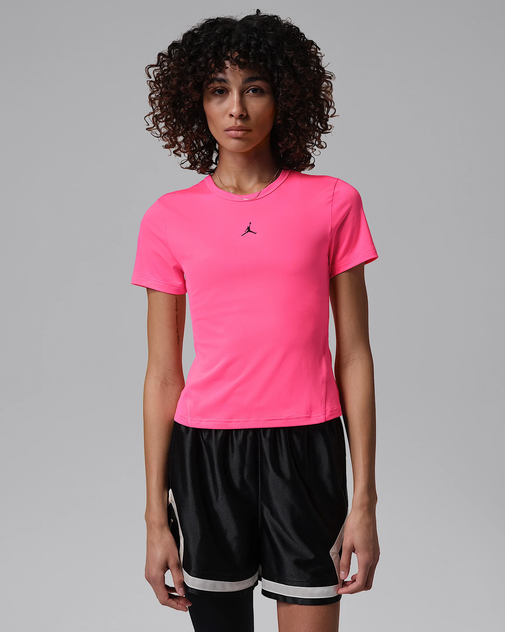 Meet your new favorite workout essential. Made from soft fabric that stretches with your every move, this snug top is ready to layer or just throw on and go. It uses our sweat-wicking Dri-FIT material to help keep you comfortable and help you stay focused on your next rep. Benefits - Nike Dri-FIT technology moves sweat away from your skin for quicker evaporation, helping you stay dry and comfortable. - Stretchy fabrics move and flex with you. Product Details - 84% polyester, 16% spandex - Machine wash - Imported - Shown: Hyper Pink/Black - Style: IF2354-645 SIZE & FIT Model is wearing size S and is 5′11″180cm Sm fit: sleek and tailored