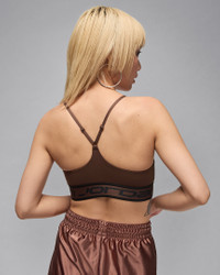 Ideal for low-impact workouts and everyday wear, this lightweight bra helps keep you moving in comfort. The minimalist design gives light support while smooth and stretchy sweat-wicking fabric pairs with adjustable straps and a wide chest band for a stay-put fit. Benefits - Nike Dri-FIT technology moves sweat away from your skin for quicker evaporation, helping you stay dry and comfortable. - Engineered pads slip in from the bottom and stay put during wash and wear for a smooth, reliable silhouette. - Thin straps adjust in the back to help you dial in your perfect fit. - Soft jacquard chest band helps provide a snug fit. Product Details - Body: 78-79% polyester/21-22% spandex. Bottom hem: 60% nylon/30% polyester/10% spandex. Lining: 84% polyester/16% spandex. Interlining: 80% polyester/20% spandex. Top and back pad fabric: 100% polyester. Pad: 100% polyurethane. - Machine wash - Imported - Shown: Cacao Wow/Black/Cacao Wow/Black - Style: FV6498-259 SIZE & FIT Model is wearing size S Model height: 5′8″173cm Model bust: 32″81cm Tight fit: snug and form-fitting Light support: feels ke a soft hug with plenty of freedom