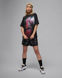Soft and sweat wicking? This roomy, midweight cotton tee offers both with an airbrush-inspired graphic that nods to '90s style. Benefits - Nike Dri-FIT technology moves sweat away from your skin for quicker evaporation, helping you stay dry and comfortable. - Midweight cotton fabric feels soft and has a slight drape. Product Details - 100% cotton - Machine wash - Imported - Shown: Black/White - Style: IB1963-010 SIZE & FIT Model is wearing size S and is 5′8″173cm Loose fit: roomy and relaxed