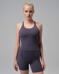 Meet our favorite workout essential. Made from midweight, peachy-soft fabric that stretches with your every move, this snug tank uses our sweat-wicking tech to help you stay focused on your next rep. Benefits - Nike Dri-FIT technology moves sweat away from your skin for quicker evaporation, helping you stay dry and comfortable. - Built-in shelf bra adds a second layer of fabric and light support. - Racerback design helps allow for easy, comfortable movement. Product Details - 80% polyester/20% spandex - Machine wash - Imported - Shown: Dark Raisin/Off Noir - Style: HQ8905-573 SIZE & FIT Tight fit: snug and form-fitting