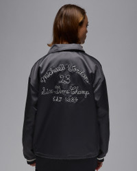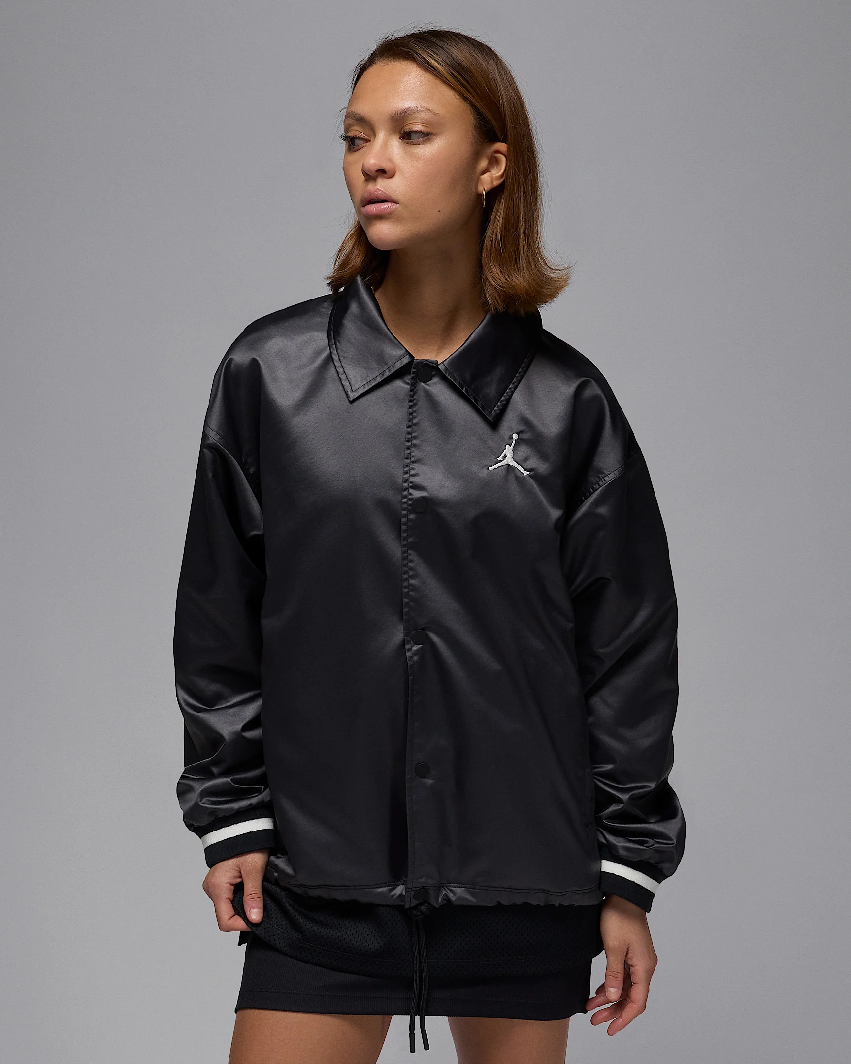 Celebrate more than 40 years of Jordan style with this roomy, lightweight layer. With a smooth satin shell and woven nylon lining, it celebrates MJ's legacy with chain stitch embroidery. Benefits - Drawcord in the hem lets you cinch up your style as you see fit. - Water-repellent finish helps keep you dry in wet weather. Product Details - Body: 100% polyester. Lining: 100% nylon. - Ribbed cuffs - Machine wash - Imported - Shown: Black/Sail - Style: HJ0087-010 SIZE & FIT Model is wearing size S and is 5′9″175cm Loose fit: roomy and relaxed