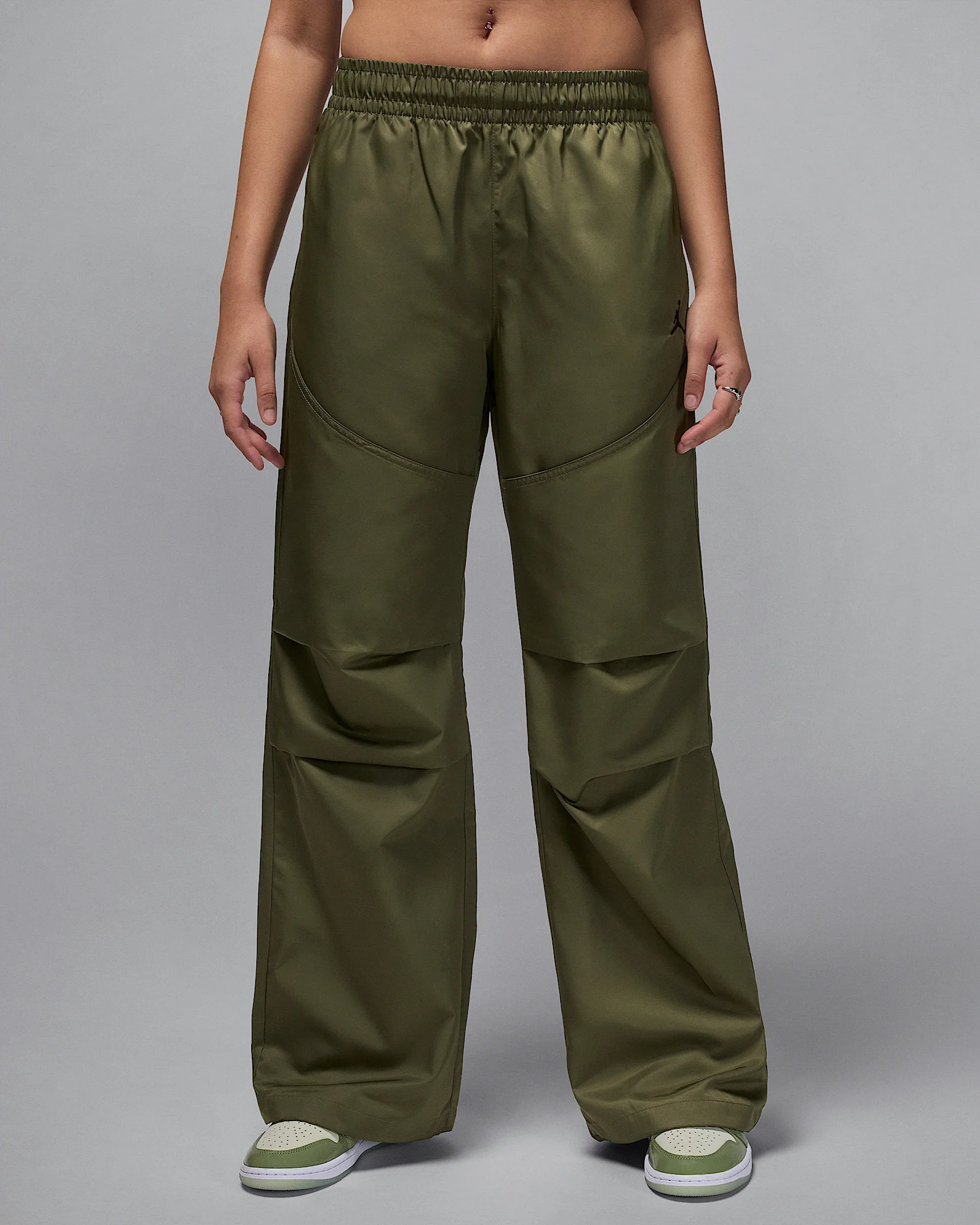 Lightweight, water-repellent twill fabric keeps these mid-rise pants feeling smooth and crisp. A loose fit grounds your look in laid-back comfort while darts at the knees, angled design lines and adjustable bungees at the hem add subtle style. Benefits - Lightweight twill fabric is smooth and has a water-repellent finish to help you stay dry in wet weather. - Elastic waistband with internal drawcord lets you get the perfect fit. Product Details - Body: 100% polyester. Pocket bags: 100% nylon. - Side and rear pockets - Machine wash - Imported - Shown: Medium Olive/Black - Style: HF9465-222 SIZE & FIT Model is wearing size S and is 5′9″175cm Loose fit: roomy and relaxed Fl length: hits below ankle