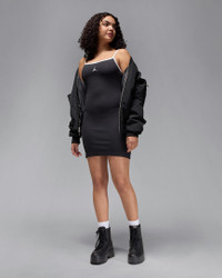 Designed to hug your curves, this ribbed dress has just the right amount of stretch. Thin, adjustable straps help you find your perfect fit while subtle embroidered branding allows you to dress up your look or keep it casual. Product Details - 94% polyester/6% spandex - Built-in shelf bra - Machine wash - Imported - Shown: Black/White/White - Style: HJ0062-010 SIZE & FIT Model is wearing size S and is 5′8″173cm Tight fit: snug and form-fitting