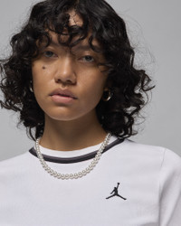 Classic, comfy and cropped—this top is everything you need. Soft ribbed fabric has just the right amount of stretch for a body-skimming fit. Plus, an embroidered Jumpman adds subtle Jordan style. Product Details - 61% polyester/30% cotton/9% spandex - Machine wash - Imported - Shown: White/Black - Style: FV7089-100 SIZE & FIT Model is wearing size S and is 5′7″170cm Tight fit: snug and form-fitting