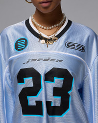 Bold Jordan style and lightweight fabric that pulls sweat away from your skin for quick evaporation make this roomy Y2K-inspired jersey top a fan favorite. Product Details - 100% polyester - Ribbed neck - Machine wash - Imported - Shown: Hydrogen Blue - Style: HF9459-407 SIZE & FIT Model is wearing size S and is 5′10″178cm Loose fit: roomy and relaxed