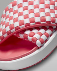 Plush comfort is a must for your wardrobe—and footwear is no exception. These luxe slides have pillowy, criss-cross straps lined with fabric that feels soft against your skin. Air cushioning and a slight platform give you that 'walking on clouds' feel with every step. Benefits - Nike Air technology absorbs impact for cushioning with every step. - Padded, criss-cross strap with lined underside feels soft and comfortable. - Foam in the midsole with Air-Sole unit in heel cushions every step. - Durable rubber tread gives you excellent traction. Product Details - Perforations beneath your heel - Printed Jumpman logo - Shown: Sea Coral/Sail/White - Style: DO8863-800 SIZE & FIT Fits large; we recommend ordering a half size down
