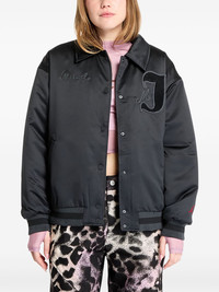 Varsity bomber jacket Highlights - Black - Embroidered logo detail - Snap-button closure - Ribbed cuffs - Ribbed hem Imported Composition Outer: Polyester 100% Lining: Nylon 100%, Polyester 100%