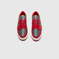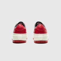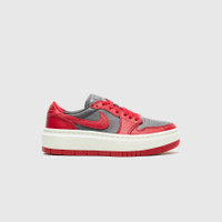 - DH7004 006 - Dark Grey/Varsity Red-Sail - Low cut iteration of the iconic Air Jordan 1, but with a platform midsole for a fun new look - Black & white tumbled leather upper with metallic silver toe box and heel panel - Black tumbled leather swoosh - Black leather tongue - Stitched Jordan "WINGS" logo outline on the heel - Platform sail hollow rubber midsole with dense eva center for sturdy, lightweight feel - Black rubber outsole edge - Leather & suede sockliner for a more elevated feel
