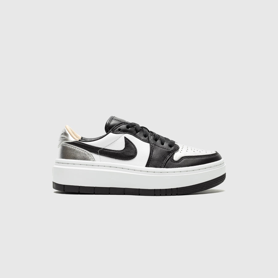- DQ8561 001 - Metallic Silver/Black-White-White Onyx - Low cut iteration of the iconic Air Jordan 1, but with a platform midsole for a fun new look - Black & white tumbled leather upper with metallic silver toe box and heel panel - Black tumbled leather swoosh - Black leather tongue - Stitched Jordan "WINGS" logo outline on the heel - Platform sail hollow rubber midsole with dense eva center for sturdy, lightweight feel - Black rubber outsole edge - Leather & suede sockliner for a more elevated feel