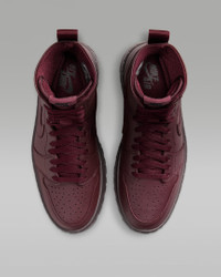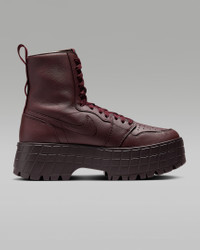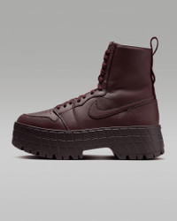 (Flight) suited and booted. This bold, rugged sneaker boot is key for your rotation. Luxe full-grain leather combines with a chunky platform sole to pump up your personal style. Exaggerated outsole lugs and Nike Air cushioning support your steps. And don't sleep on the AJ1 DNA: a diamond inset on the heel displays Jumpman insignia, grounding your look in hoops heritage. More Benefits - Nike Air in the heel cushions every step. - Perforated toe box lets your foot breathe. - Elevated outsole adds height and extra comfort. Product Details - Shown: Burgundy Crush/Burgundy Crush/Brown Basalt - Style: FJ5737-600
