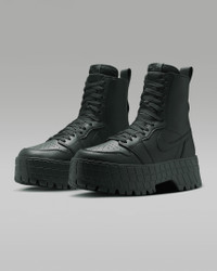 (Flight) suited and booted. This bold, rugged sneaker boot is key for your rotation. Luxe full-grain leather combines with a chunky platform sole to pump up your personal style. Exaggerated outsole lugs and Nike Air cushioning support your steps. And don't sleep on the AJ1 DNA: a diamond inset on the heel displays Jumpman insignia, grounding your look in hoops heritage. More Benefits - Nike Air in the heel cushions every step. - Perforated toe box lets your foot breathe. - Elevated outsole adds height and extra comfort. Product Details - Shown: Deepest Green/Deepest Green/Black - Style: FJ5737-300