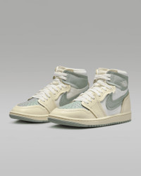 Your style is iconic and your taste is next level. Show it off with the Method of Make series—limited, elevated iterations of legendary sneakers. Soft-touch textiles on the tongue and underlays give this AJ1 a tactile luxury. The unlined toe box puts an emphasis on deconstructed comfort. Take another look and you'll notice the exaggerated proportions, visually setting your J's apart from the rest. Get ready to get noticed. Product Details - Shown: Legend Sand/Sail/Muslin/Jade Smoke - Style: FB9891-104
