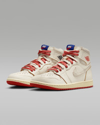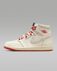 This AJ1 celebrates the eye-catching imperfections on the rare samples that started this journey. Things got crazy in the sneaker lab back in the day with imperfect AJ1 samples, incorrect logo placements, odd seams and out-of-place packaging. “Mistakes” turned into marks of rarity and unforgettable must-haves. We call that Rare Air. Benefits - One-off details like suede Swoosh logos, "Nike Air" Wings logo and woven tongue labels play up the original lore. - Encapsulated Air-Sole unit in the heel provides lightweight cushioning. - Full-grain leather in the upper is soft and durable. - Rubber outsole provides traction. - Cupsole construction recreates the shoe's classic profile. Product Details - Wings logo on collar - Woven tongue - "Nike Air" Swoosh design on tongue top - Raw-edge stitching - Includes extra laces - Shown: Sail/Light Bone/Cinnabar - Style: DB4612-100