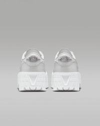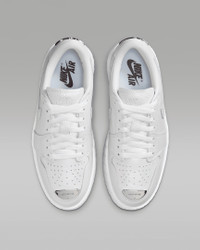 Luxe full-grain leather combines with a chunky platform to pump up your personal style. Exaggerated outsole lugs and Nike Air cushioning support your every step. And don't sleep on the AJ1 DNA: A diamond inset on the heel displays Jumpman insignia, grounding your look in hoops heritage. Benefits - Genuine full-grain leather in the upper gives you a premium look and feel. - Nike Air in the heel helps cushion every step. - Foam midsole helps add soft, supportive cushioning. - Perforated toe box lets your foot breathe. - Elevated lugged rubber outsole adds height and extra comfort. Product Details - Shown: White/Metallic Silver - Style: HF3184-100
