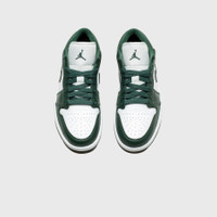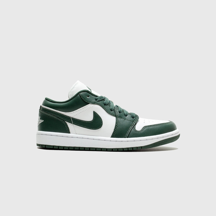 - DC0774 113 - White/Galactic Jade - Low-cut iteration of the iconic Air Jordan 1 - White and Glactic jade leather upper - Galactic jade leather swoosh - Galactic jade leather heel wrap - White mesh tongue with embroidered "JUMPMAN" logo - Jordan "WINGS" logo on the heel - White rubber midsole - Galactic jade rubber outsole