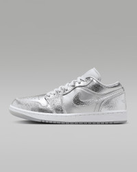 Put your best foot forward in this eye-catching AJ1. Luxe metallic cracked leather lets you shine like the star you are while premium details (peep that semi-translucent sole) keep these chrome-inspired kicks on point. Benefits - Real and synthetic leather in the upper offers durability and structure. - Encapsulated Nike Air unit provides lightweight cushioning. - Rubber in the outsole helps give you traction on various surfaces. Product Details - Embroidered Wings logo - Embroidered Jumpman logo - Foam midsole - Shown: Metallic Silver/Wolf Grey/White/Photon Dust - Style: FN5030-001