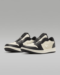 Slip on a legend with the Air Jordan 1 Retro Low Slip. Its laceless design has an easy snap-button closure, while a lightweight foam midsole with an Air-Sole unit gives you that all-day comfort on the go. Benefits - Laceless design has a button-snap tongue for easy on and off. - Encapsulated Air-Sole unit in the heel enhances cushioning. - Elongated tongue label is inspired by the original Air Jordan. - Foam midsole gives you a cushioned ride. - Solid rubber outsole provides durability and traction. Product Details - Shown: Fossil/Ivory/Anthracite/Black - Style: AV3918-201