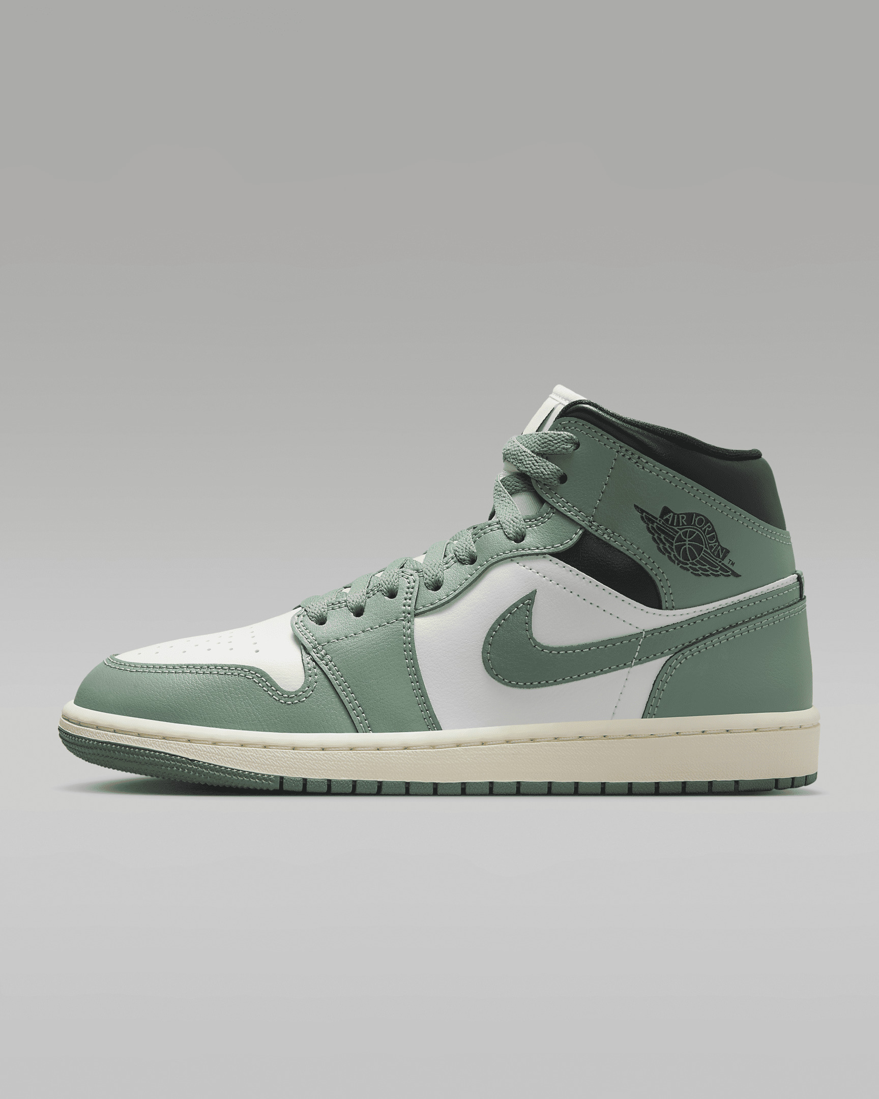 The Air Jordan 1 Mid brings full-court style and premium comfort to an iconic look. Its Air-Sole unit cushions play on the hardwood, while the padded collar gives you a supportive feel. Benefits - Premium leather and synthetic upper provides durability, comfort and support. - Air-Sole unit in the heel delivers signature cushioning. - Rubber outsole offers traction on a variety of surfaces. Product Details - Shown: Sail/Anthracite/Jade Smoke - Style: BQ6472-130