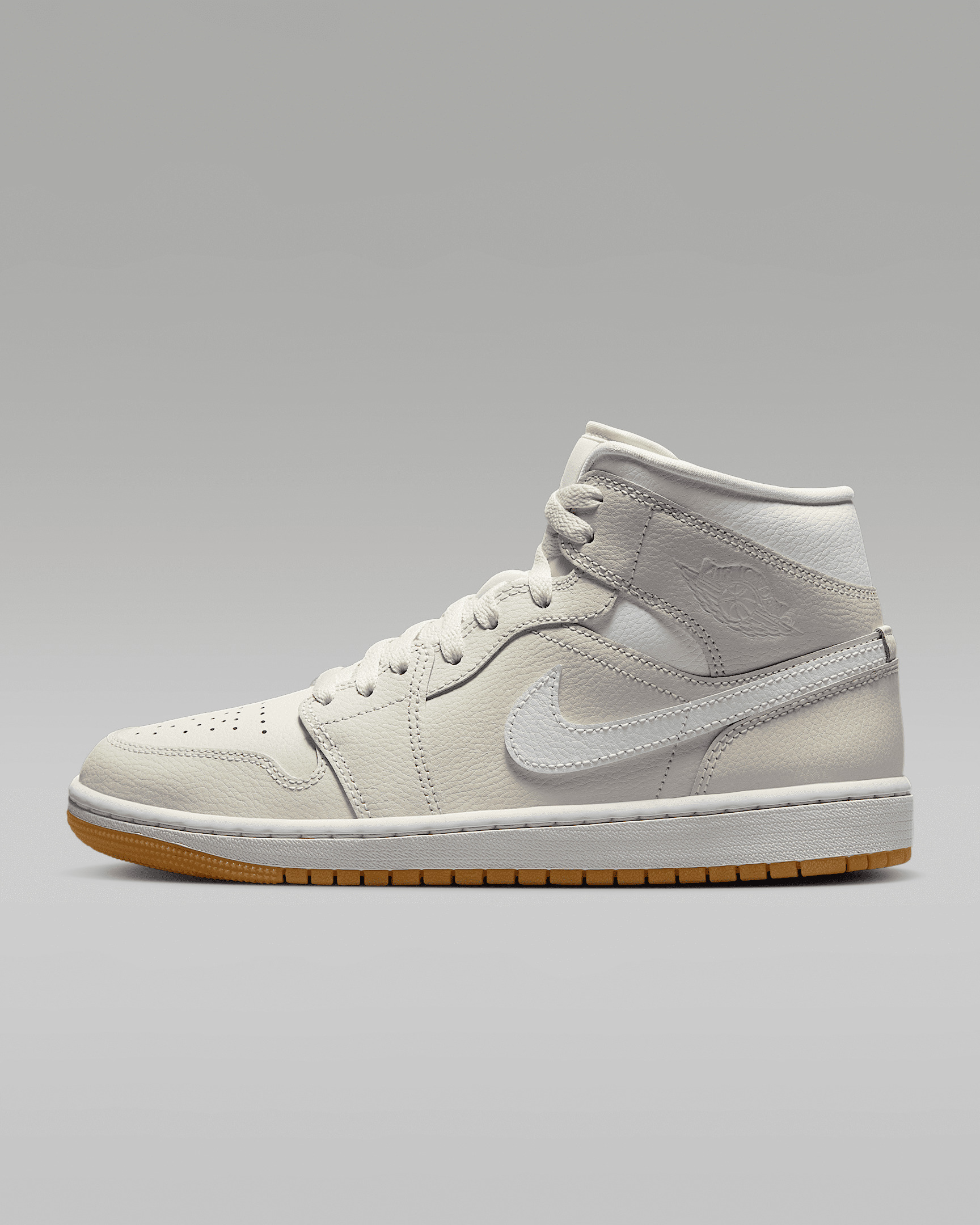 The Air Jordan 1 Mid brings full-court style and premium comfort to an iconic look. Its Air-Sole unit cushions play on the hardwood, while the padded collar gives you a supportive feel. Benefits - Premium leather and synthetic upper provides durability, comfort and support. - Air-Sole unit in the heel delivers signature cushioning. - Rubber outsole offers traction on a variety of surfaces. Product Details - Shown: Phantom/Gum Light Brown/White - Style: BQ6472-021