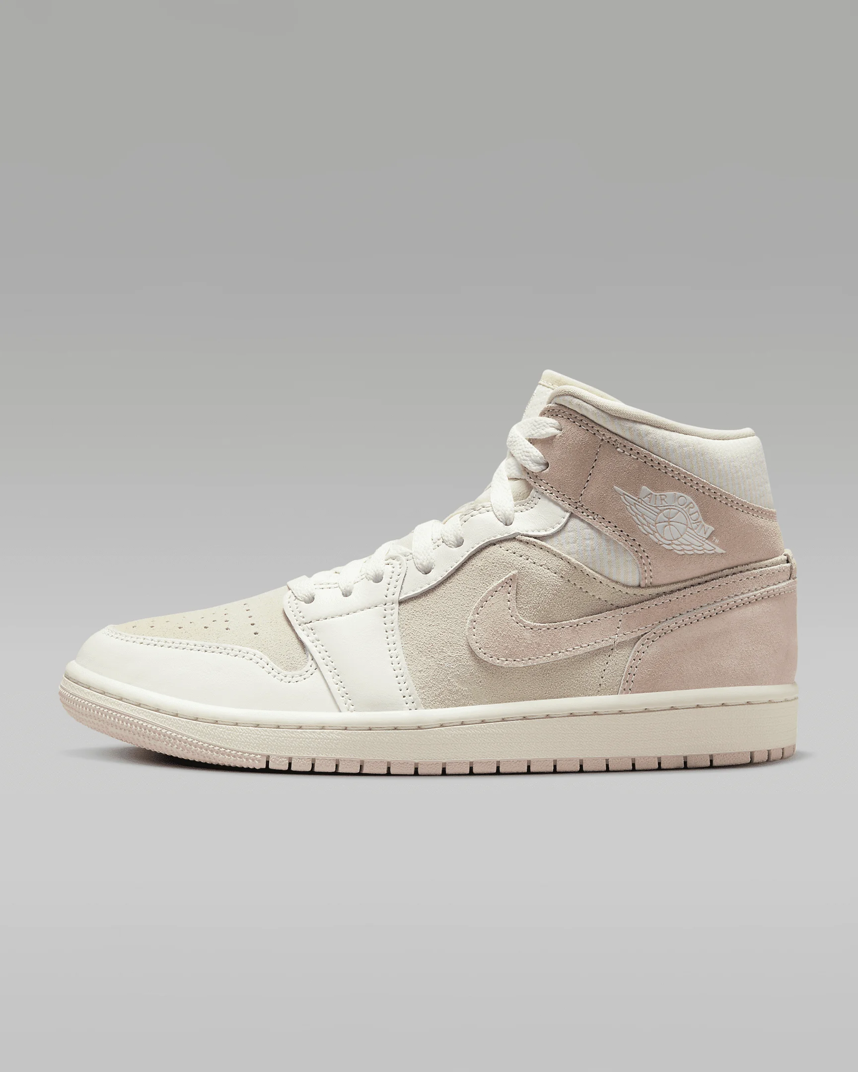 Add some pop to your 'fit with this refreshed AJ1. Subtle stripes, premium leather, soft suede and a touch of durable cotton give this icon a fresh look. Plus, classic Air cushioning lets you comfortably step into your day. Benefits - Smooth leather, soft suede and woven cotton add durability, structure and texture to the upper. - Encapsulated Nike Air unit helps provide lightweight cushioning. - Rubber sole has a full cupsole stitch for exceptional durability. - Rubber in the outsole helps give you traction on various surfaces. Product Details - Foam midsole - Embroidered Jumpman - Debossed Wings logo - Shown: Coconut Milk/Sail/Legend Pink - Style: FQ1926-161