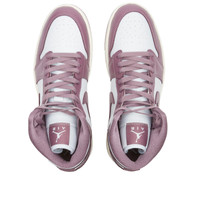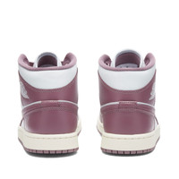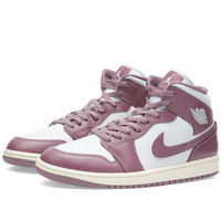 Treat yourself to a fresh look this season with the Air Jordan 1 Mid sneakers in this bi-colour iteration. The crisp white leather uppers are overlaid with tonal mauve accents including the mudguard, laces, collar and iconic ‘Swoosh’. A perfect, wear-anywhere sneaker, the Nike Air-Sole unit cushions your stride from heel to toe whether you are heading to the court or out for brunch with friends. - Premium Leather Uppers - Encapsulated Air-Sole Unit - Solid Rubber Outsole - Printed Wing Logos - Padded Collar - Lace Up Fastening - Perforated Toe Box