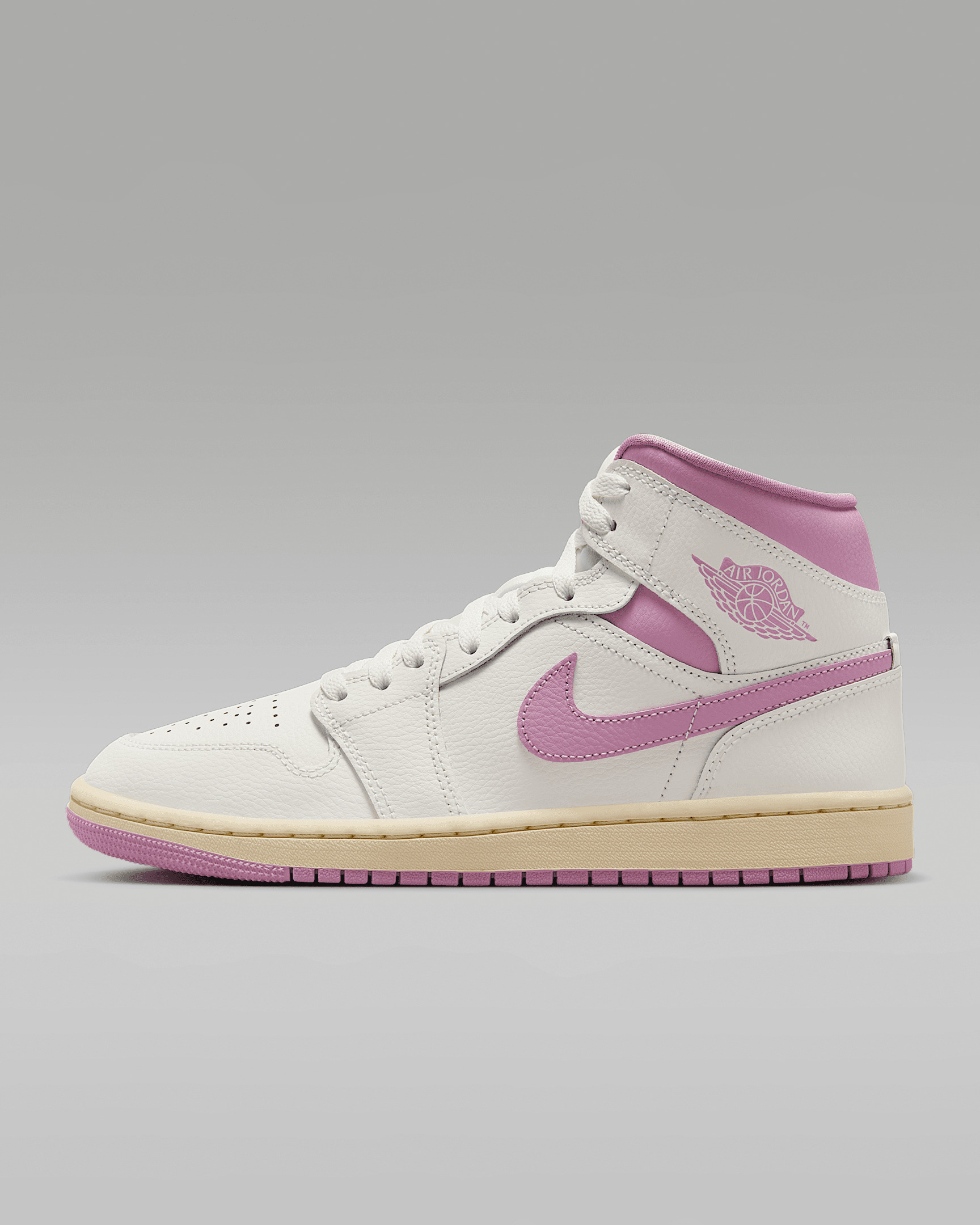 The Air Jordan 1 Mid brings full-court style and premium comfort to an iconic look. Its Air-Sole unit cushions play on the hardwood, while the padded collar gives you a supportive feel. Benefits - Premium leather and synthetic upper provides durability, comfort and support. - Air-Sole unit in the heel delivers signature cushioning. - Rubber outsole offers traction on a variety of surfaces. Product Details - Shown: Sail/Muslin/Orchid - Style: BQ6472-162