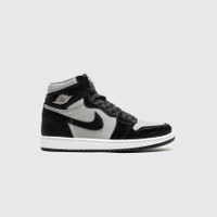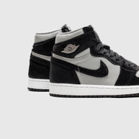 - DZ2523 001 - Medium Grey/Black-White - The iconic Air Jordan 1, done up in a women's exclusive colorway - Black pony hair upper with medium grey leather toe box & side panel - Black nylon tongue with tonal tongue tag & medium grey "NIKE AIR" branding - Black pony hair swoosh - Metal "WINGS" emblem - Black pony hair heel wrap with medium grey leather collar - White rubber midsole - Black rubber outsole - Additional pair of laces
