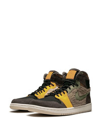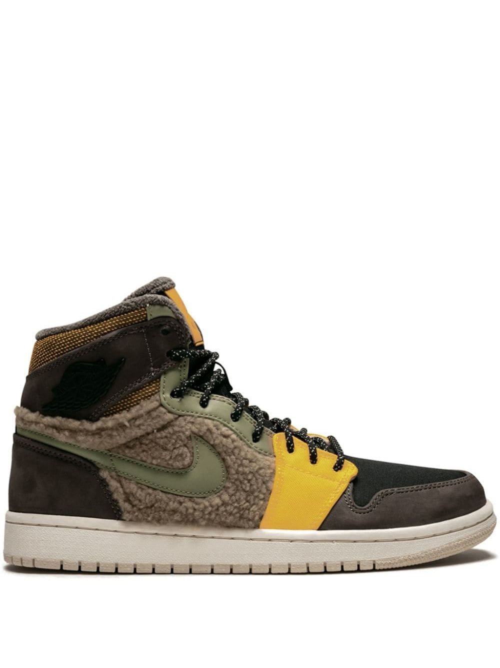 Air Jordan 1 RTR HI PREM UT sneakers This women's Air Jordan 1 High launched alongside women’s sneakers in the “Utility Pack.” The weather-ready pair focuses on fashion-forward details and colours. The upper features a mixture of seasonal earthy tones like brown, black and olive green, while yellow brings brightness in the accents. Finishing off the Air Jordan 1 High Zip, a sherpa-style fleece adorns the collar and quarter panel. Imported Composition Sole: Rubber 100% Outer: Polyester 100%, Leather 100%