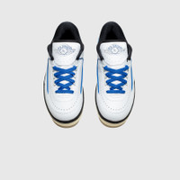 - DX4401 104 - White/Varsity Royal-Black-Muslin - Jordan brings back the polarizing Air Jordan 2 Low - White leather upper - Varsity Royal contrasting accents - White leather tongue with TPU Air Jordan "WINGS" emblem - White plastic eyelets - White TPU heel counter with Varsity royal TPU heel cap - Black foam midsole - Varsity royal and Muslin rubber outsole