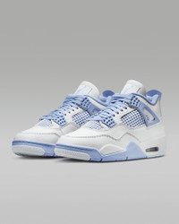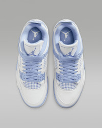 What's better than a fresh pair of AJ4's? Not much, if you ask us. Smooth leather keeps this pair looking crisp and premium. Two sets of laces and three removable flowers let you change up your style whenever the mood strikes. Benefits - Real and synthetic leather works with grid mesh underlays to give you texture, dimension and elevated style. - Plush and comfortable, Max Air cushioning has just the right amount of support. - Free-floating eyestays near the ankle tighten over your foot when you lace up for a secure feel. - Rubber outsole with herringbone tread pattern helps give you durable traction. - Embroidered and chenille flower accessories can be attached to the laces for added style. Product Details - Two sets of laces - Removable lace accessories - Shown: White/Blue Tint/Oil Green/Aluminum - Style: HV0823-100