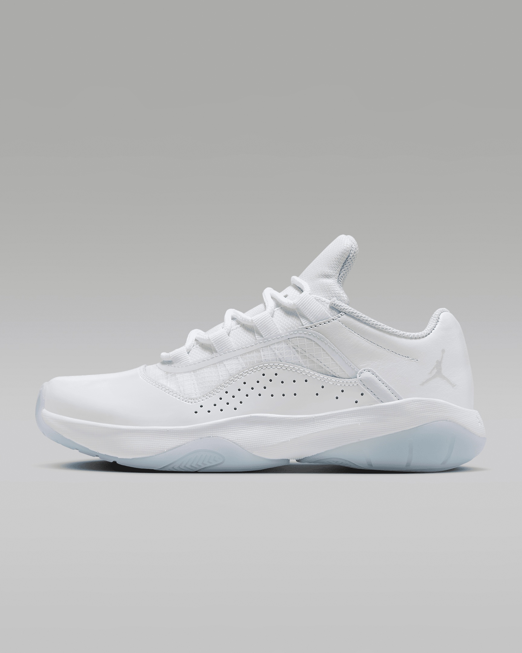 Inspired by classic Jordan sneakers, these low-tops up your comfort with an extra-soft leather toe. Underfoot is soft, smooth foam with rubber pods in just the right spots for traction while webbing loops make lacing quick and easy. Benefits - Soft leather covers the toe and extends along the shoe's outer side with perforations for breathability. - Fabric wraps up and over the top of the foot for a secure, conforming fit. - Encapsulated Air cushioning in the forefoot is lightweight and resilient for all-day comfort. - Solid rubber outsole gives you traction on a variety of surfaces. - Shown: White/Ice Blue/Football Grey - Style: DV2629-140