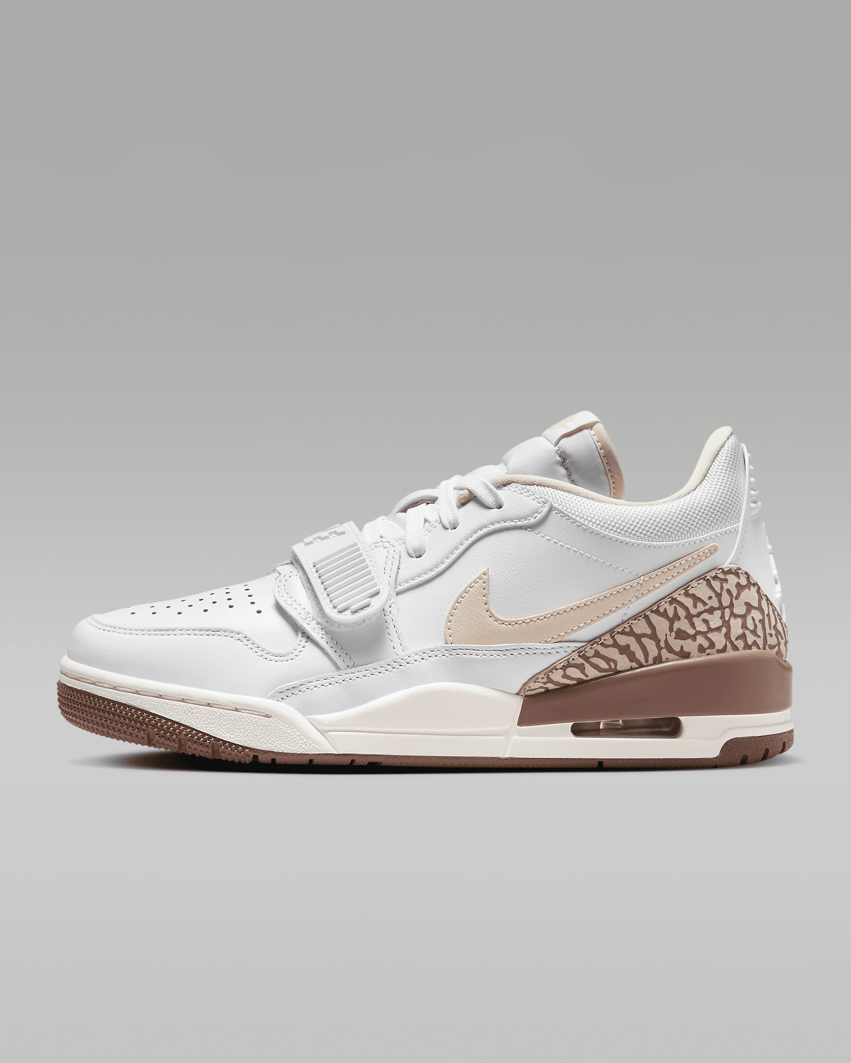Who doesn't love a good mash-up? Taking elements from the AJ1, AJ3 and the Nike Air Alpha Force, these kicks encompass the best of the best. Iconic details (check out that elephant print and midfoot strap) honor MJ's time in Chicago's 312 area code. With premium materials and Nike Air cushioning, this is the beginning of a whole new legacy. Benefits - Real and synthetic leather in the upper offers durability and structure. - Midfoot strap adds bold branding and helps secure your fit. - Visible Nike Air unit in the heel helps provide comfortable cushioning. - Rubber sole has a full cupsole stitch for exceptional durability. - Rubber in the outsole helps give you traction on various surfaces. Product Details - Shown: White/Archaeo Brown/Sail/Legend Light Brown - Style: FQ7827-100