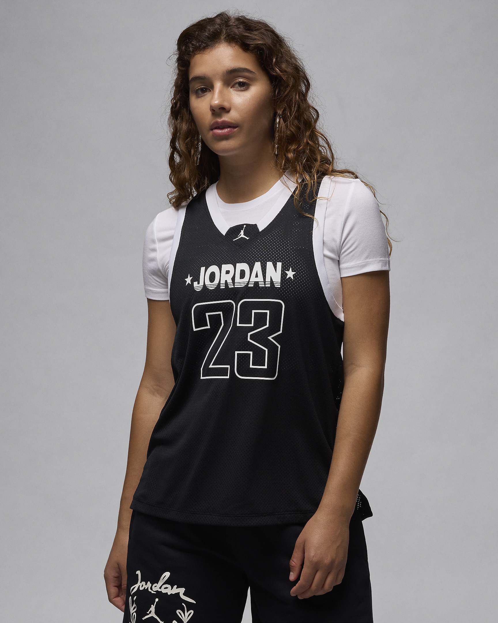 A refresh of past jerseys, this update extends the length for added coverage. Lightweight mesh and a roomy cut keep the fit breezy while a V-neck design and dropped armholes make for a casual look. Product Details - 100% polyester - Machine wash - Imported - Shown: Black/White/White - Style: FN6687-010 SIZE & FIT Loose fit: roomy and relaxed