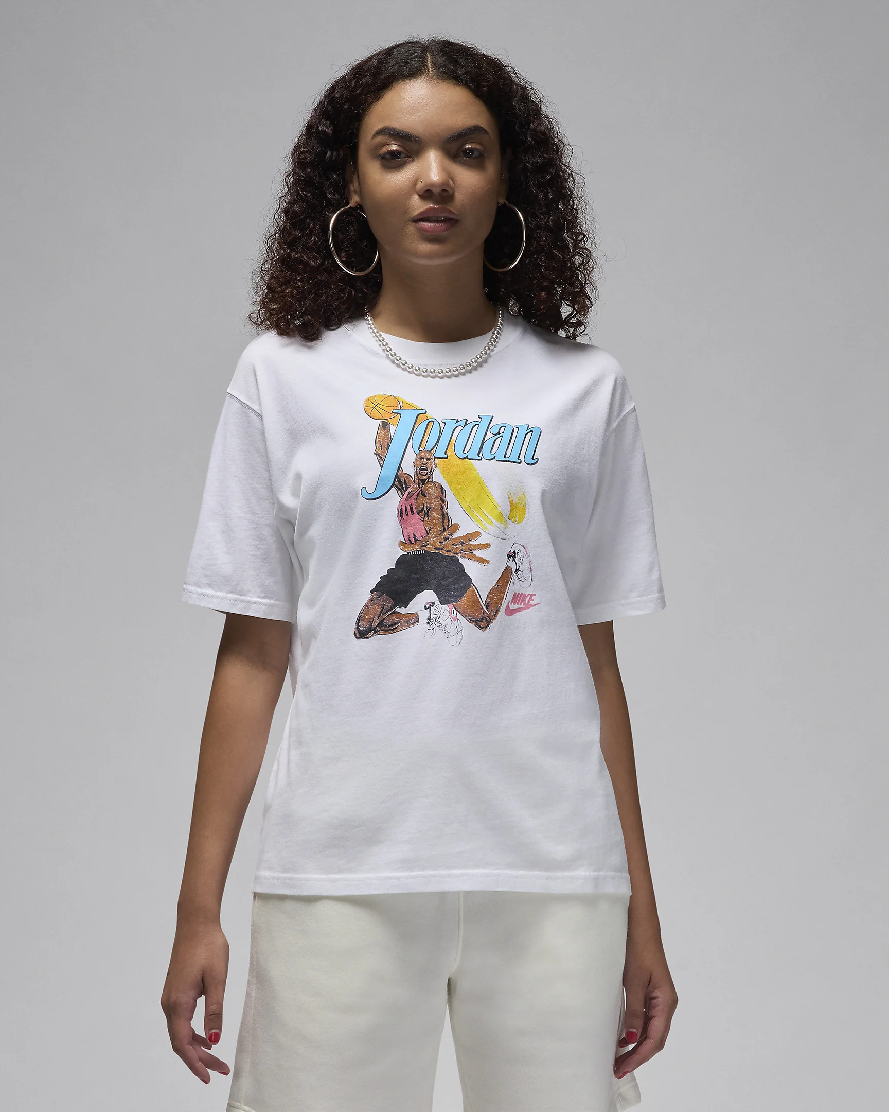 Midweight cotton keeps this tee soft while slightly dropped shoulders and a loose fit provide a comfortable, confident feel. Add in a vintage-inspired MJ graphic and you've got yourself a real winner. Product Details - 100% cotton - Machine wash - Imported - Shown: White/Black - Style: FV7122-100 SIZE & FIT Loose fit: roomy and relaxed