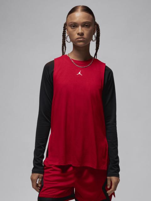 Breeze through your workouts in this lightweight mesh tank. Loose-fitting with a hem that hits below the waist, it's designed to let you move freely. And check out the panel on the back—its Diamond shape recalls one of Jordan's most iconic designs. Benefits - Nike Dri-FIT technology moves sweat away from your skin for quicker evaporation, helping you stay dry and comfortable. - Side slits for added ventilation and ease of movement. - Lightweight power mesh panel on the back increases breathability. Product Details - Center front Jumpman in rubber print - Body: 76% polyester/12% cotton/12% rayon. Inset: 81% nylon/19% spandex. - Machine Wash - Imported - Shown: White - Style: FB4629-100 SIZE & FIT Model is wearing size S and is 5′9″175cm Loose fit: roomy and relaxed