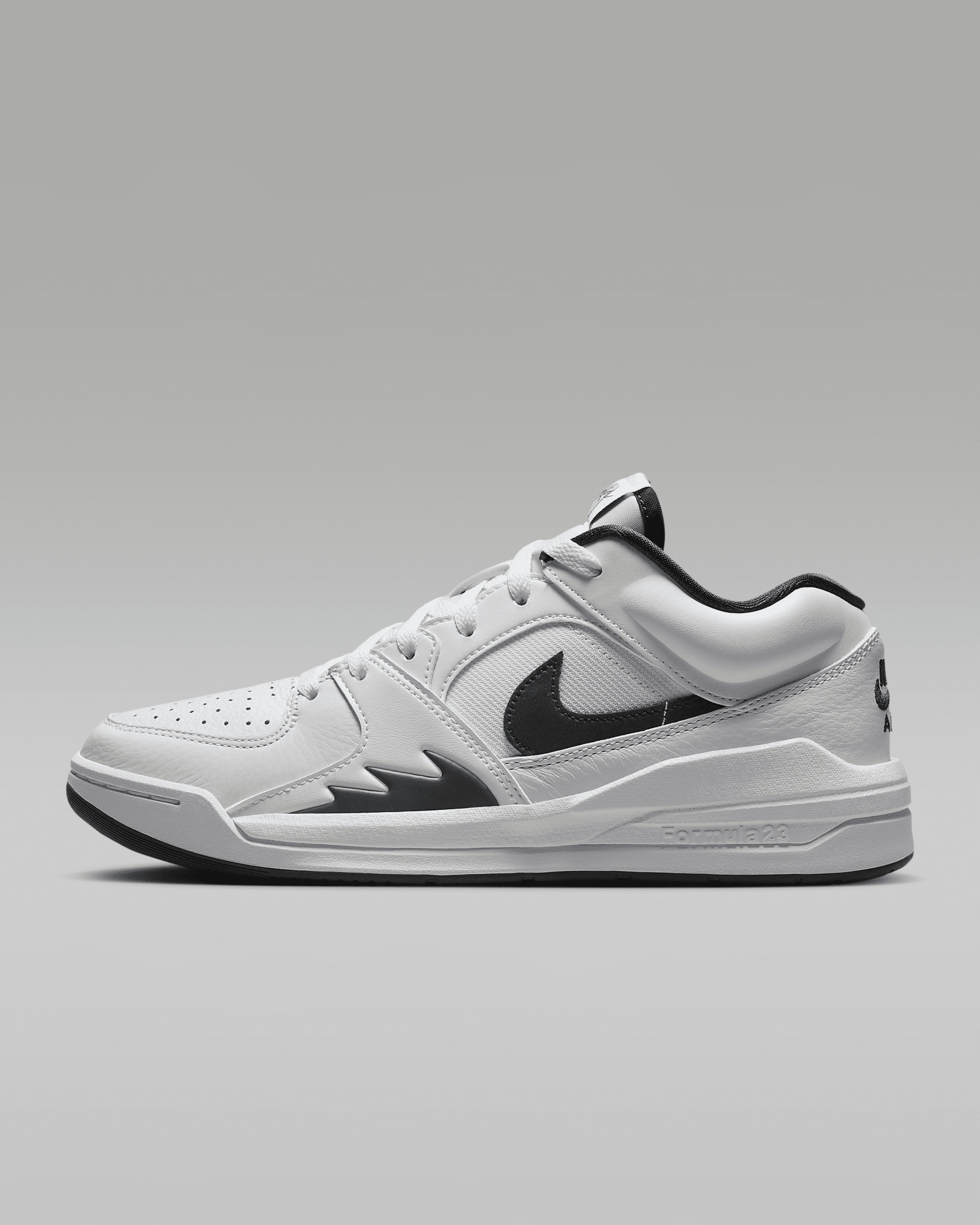 Evolve your game. The Stadium 90 takes elements from the greats and forges them into something entirely unique. Combining iconic design elements from the AJ1 and AJ5, this is a new classic with an emphasis on comfort, durability and stability. Benefits - Molded collar is inspired by the AJ5. - AJ1 inspired rubber outsole provides everyday traction. - Tonal stitching design detail echoes the iconic fire graphic from the AJ5. - Durable upper is made of real leather, synthetic leather and textile materials. - Nike Air technology absorbs impact for cushioning with every step. Product Details - Shown: White/Neutral Grey/Black - Style: FB2269-101