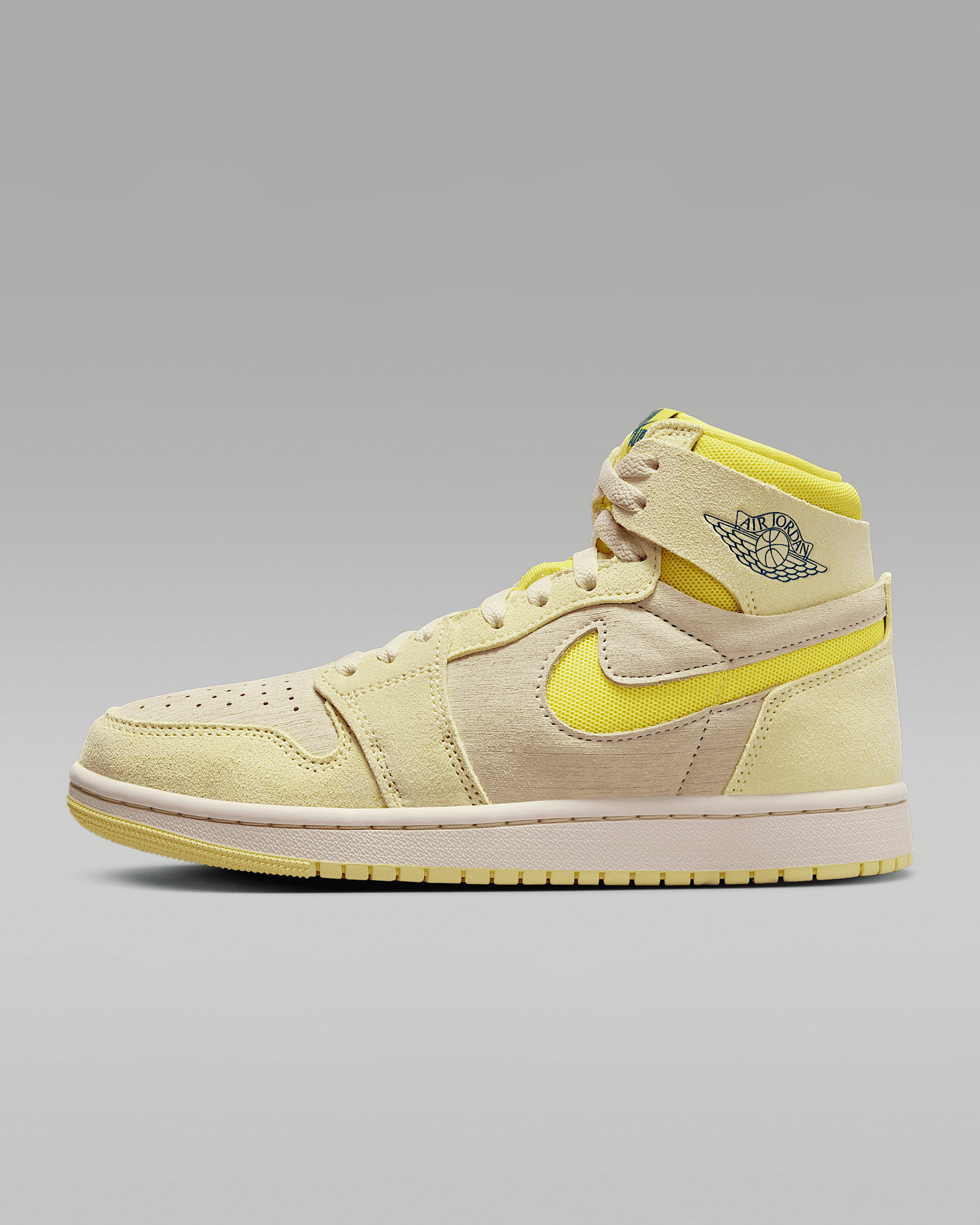Soft suede and Jordan Brand's signature Formula 23 foam come together to give you an extra luxurious (and extra cozy) AJ1. You don't need to play "either or" when it comes to choosing style or comfort with this one—which is nice, 'cause you deserve both. Benefits - Nike Air technology absorbs impact for cushioning with every step. - Suede upper and toe breaks in easily and conforms to your feet. - Formula 23 foam keeps your feet extra padded. Product Details - Shown: Citron Tint/Muslin/Sky J Teal/Dynamic Yellow - Style: DV1305-800
