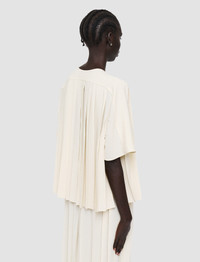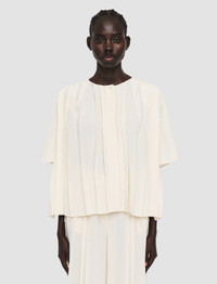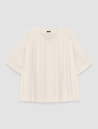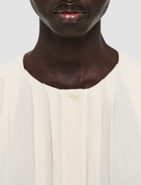 The Airy Plissé Bouloi Blouse is a relaxed fit blouse, crafted from a lightweight fabric which has a smooth, crisp hand feel. This fluid blouse is pleated around the body. It's a collarless, button-up style with a hidden placket. - Designed for a relaxed fit - Button-up style - Pleated - Semi-sheer - Product code: jf0081111154 SIZE ADVICE - Model wears French size 40 CARE & MATERIALS - 100% Polyester - Do not wash - Do not bleach - Do not tumble dry - Iron low temperature setting - Dry clean mild