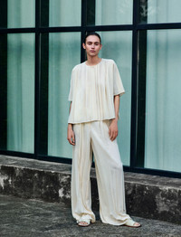 The Airy Plissé Tibre Trousers are a mid-rise, wide-leg trouser, crafted from a lightweight fabric which has a smooth, crisp hand feel. These full length, pleated trousers offer a relaxed, fluid silhouette. - Wide leg - Mid-rise - Pleated - Side pockets - Product code: jf0081581154 SIZE ADVICE - Regular outer leg length 109cm - 112cm - Shorter outer leg length 102cm - 105cm - Model wears French size 38 CARE & MATERIALS - 100% Polyester - Do not wash - Do not bleach - Do not tumble dry - Iron low temperature setting - Dry clean mild