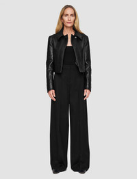 The Alana Tailoring Wool Stretch Trousers are a high-rise, wide leg trouser, crafted from JOSEPH's signature tailoring wool fabric. These trousers offer a flattering fit around the waist and hips into a fluid wide leg. Finished with central pressed creases which create an elegant, tailored look. - Designed for a regular fit - Wide leg - High-rise - Full-length - Side pockets - Product code: jp0017220010 - Black SIZE ADVICE - Regular outer leg length 113cm - 116cm - Shorter outer leg length 102cm - 105cm - Model wears size FR 36/UK 8/EU 34/US 4/DE 34/IT 40/JP 7 CARE & MATERIALS Discover the Care Guide, a guide to help you to care for your garments. - 98% Virgin wool 2% Elastane - Do not wash - Do not bleach - Do not tumble dry - Iron low temperature setting - Dry clean The Responsible Wool Standard is guaranteeing animal welfare, land management and social requirements on the entire supply chain, from wool farmer to Joseph. This standard is backed up by independent certification. Certified by Ecocert Greenlife, certification N° 272512 JOSEPH LIMITED.
