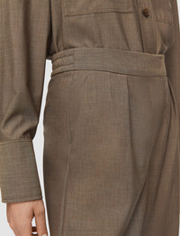 The Alanel Light Wool Tailoring Trousers are a high-rise, wide leg trouser, crafted from 100% virgin wool. These trousers are luxuriously smooth and lightweight, and offer a relaxed, tailored look. They're finished with an elasticated waistband at the back for comfortable wear. Model wears size FR 36/UK 8/EU 34/US 4/DE 34/IT 40/JP 7 Details - Lightweight tailoring - Wide leg - High-rise - Full-length - Front pleat - Side pockets - Elasticated waistband at the back - Regular outer leg length 113cm - 116cm - Shorter outer leg length 102cm - 105cm - Product code: jf0094062202 Care & Materials - 100% Virgin Wool - Do not wash - Do not tumble dry - Iron low temperature setting - Do not bleach - Dry clean