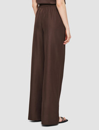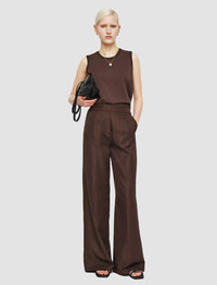 The Alanel Soft Cotton Silk Trousers are a high-rise, wide leg trouser. Crafted from silk and cotton, the fabric has a natural sheen and a silky-smooth hand feel. These trousers are lightweight and offer a relaxed look. They feature an elasticated waistband at the back for comfortable, easy wear. - Soft, unstructured tailoring - Wide leg - High-rise - Full-length - Front pleat - Side pockets - Elasticated waistband at the back - Lightweight - Product code: jf0091280167 - Ebony Brown SIZE ADVICE - Regular outer leg length 113cm - 116cm - Shorter outer leg length 102cm - 105cm - Model wears size FR 36/UK 8/EU 34/US 4/DE 34/IT 40/JP 7 CARE & MATERIALS Discover the Care Guide, a guide to help you to care for your garments. - 52% Silk 48% Cotton - Do not wash - Do not bleach - Do not tumble dry - Iron low temperature setting - Dry clean