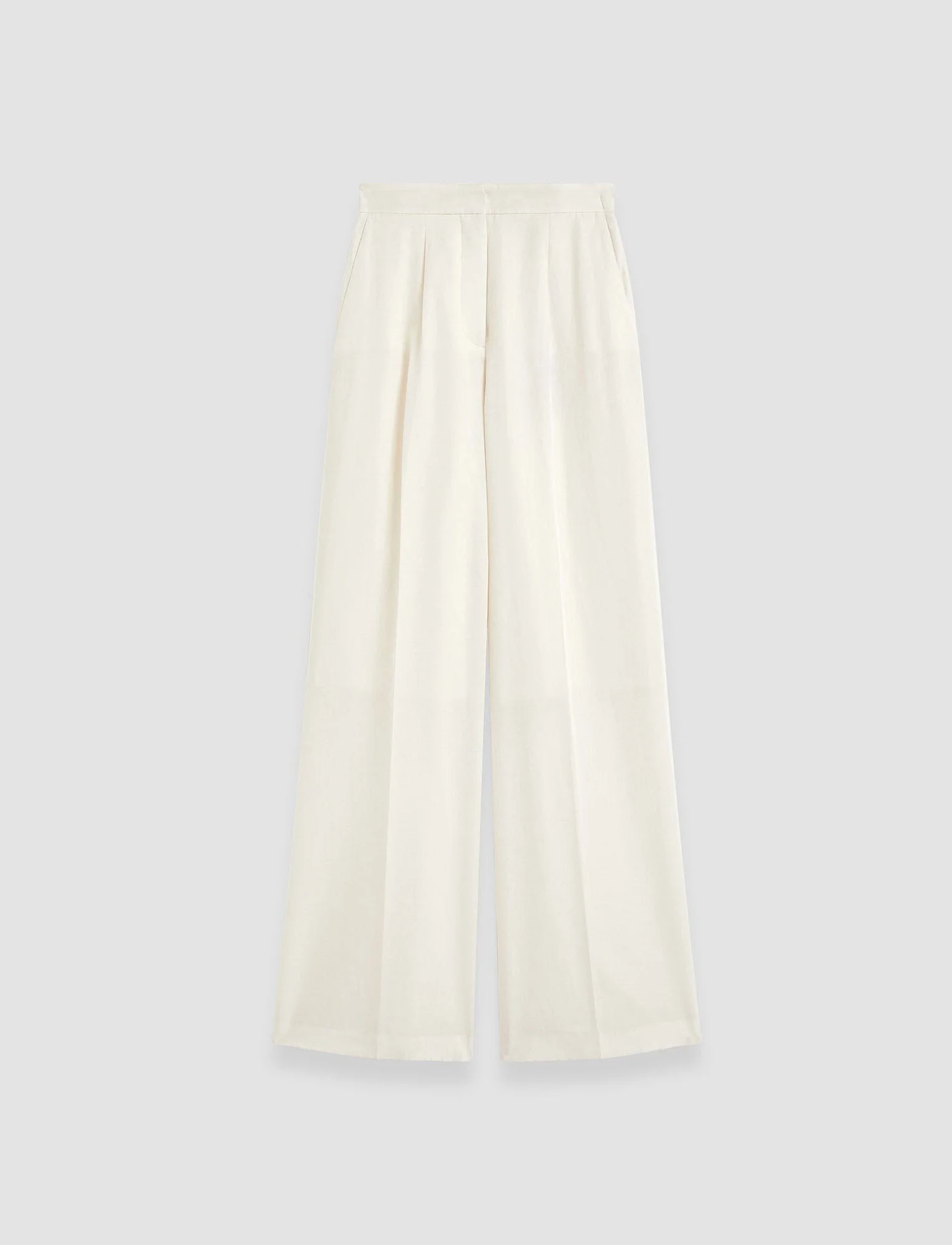The Alanel Soft Cotton Silk Trousers are a high-rise, wide leg trouser. Crafted from silk and cotton, the fabric has a natural sheen and a silky-smooth hand feel. These trousers are lightweight and offer a relaxed look. They feature an elasticated waistband at the back for comfortable, easy wear. - Soft, unstructured tailoring - Wide leg - High-rise - Full-length - Lined - Front pleat - Side pockets - Elasticated waistband at the back - Lightweight - Product code: jf0091280045 - Ivory SIZE ADVICE - Regular outer leg length 113cm - 116cm - Shorter outer leg length 102cm - 105cm - Model wears size FR 36/UK 8/EU 34/US 4/DE 34/IT 40/JP 7 CARE & MATERIALS Discover the Care Guide, a guide to help you to care for your garments. - 52% Silk 48% Cotton - Do not wash - Do not bleach - Do not tumble dry - Iron low temperature setting - Dry clean