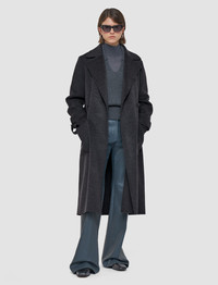 The Arline Double Face Cashmere Coat is a relaxed fit, A-line coat, crafted from a blend of luxuriously soft wool and cashmere. This timeless coat is double-breasted with a two button closure, featuring spacious front pockets and adjustable cuffs straps. Model wears size FR 36/UK 8/EU 34/US 4/DE 34/IT 40/JP 7 Details - We are recommending two sizes down - Designed for a relaxed fit - Double-breasted - A-line - Mid-length - Front patch pockets - Removable belt - Cuff straps - Product code: jf0093930211 Care & Materials - 20% Cashmere 80% Wool - Do not wash - Do not tumble dry - Iron low temperature setting - Do not bleach - Dry clean