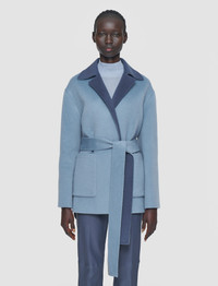 The Arnold Reversible Double Face Cashmere Coat regular fit wrap coat, crafted from a blend of wool, cashmere and silk. Luxuriously soft and lightweight, this reversible, two-tone style offers ultimate versatility. Its step hemline creates a comfortable, easy-wearing silhouette, ideal for layering. - Designed for a regular fit - Wrap style - Dropped shoulders - Patch pockets - Side pockets - Step hem - Removable belt - Reversible - Product code: jf0089621464 - Faded Sky/Harbour Blue SIZE ADVICE - Model wears size FR 36/UK 8/EU 34/US 4/DE 34/IT 40/JP 7 CARE & MATERIALS Discover the Care Guide, a guide to help you to care for your garments. - 80% Wool 10% Cashmere 10% Silk - No washing - No bleach - No tumble dry - Iron low temperature setting - Dry clean
