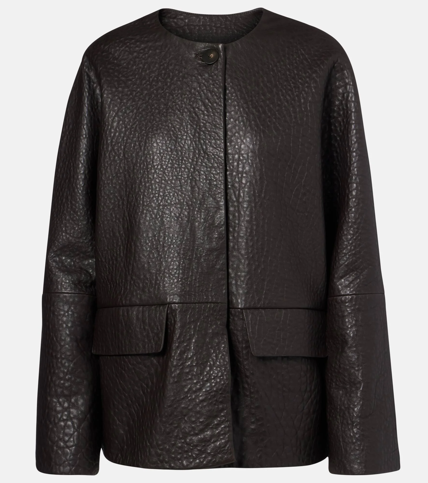 Notable for its understated yet sophisticated approach to design, Joseph delivers the building blocks for your forever wardrobe. The Barbs jacket is made from panels of textured leather with a minimal, streamlined silhouette. Product Details - Material: 100% sheep leather - Care instructions: specialist clean - Made in Turkey - Color: brown - Designer color name: Cocoa - Item color: brown - Contains non-textile parts of animal origin - Item number: P01119586 Size & Fit - True to size - Straight fit - Non-stretchy fabric - Falls below the hip - The model seen in the picture is 178cm-5'10" and wearing a size FR 36